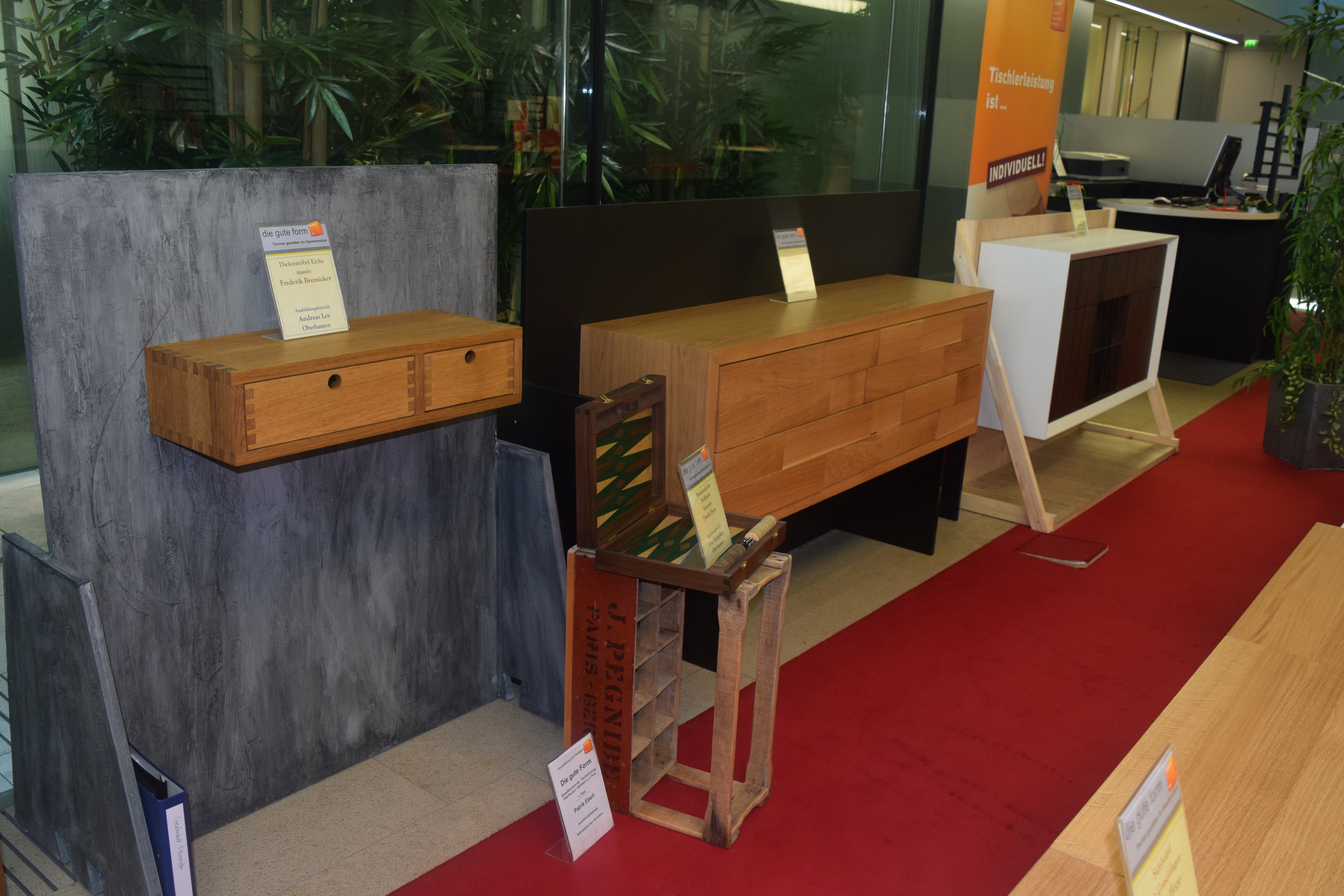 Gesellenstücke von Nachwuchstischlern in der Sparkassenfiliale Marktstraße ausgestellt und prämiert