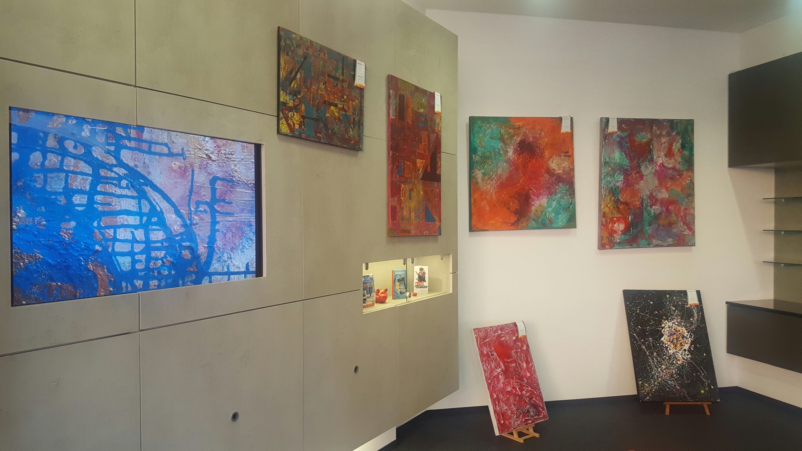 Die Leinwandarbeiten stammen aus dem Bereich der abstrakten Malerei und werden regelmäßig an den unterschiedlichsten Orten, wie zum Beispiel Handwerkermärkten ausgestellt. Die Bilder werden noch