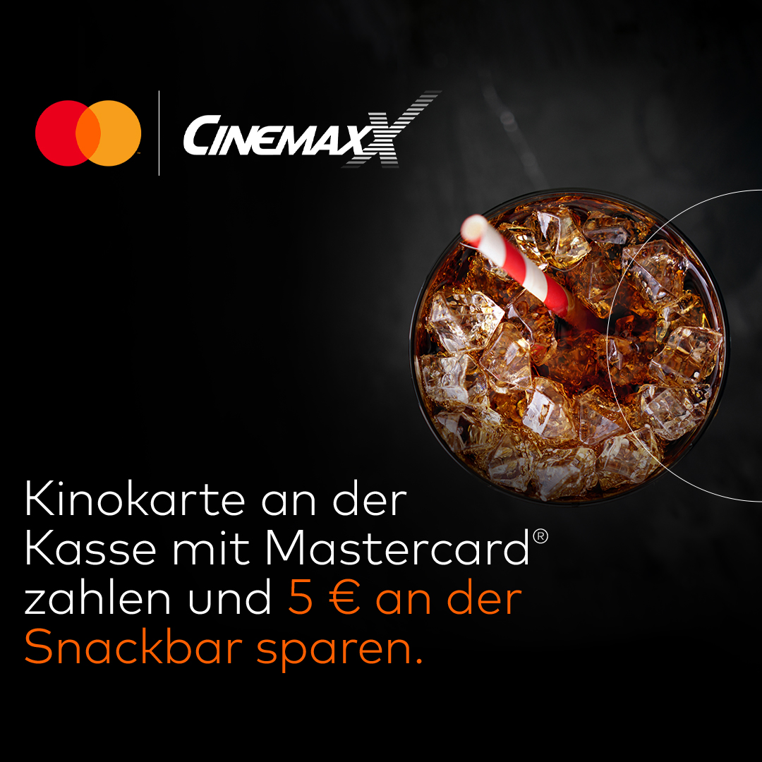 Ob Popcorn oder Nachos – Snacks gehören zum Kinobesuch einfach dazu. Zahlen Sie bei Ihrem nächsten Kinobesuch im CinemaxX mit Mastercard und sparen so 5 Euro an der Snackbar!