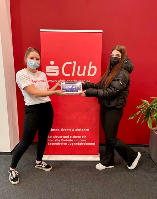 …Karlotta Lenau! Sie ist die glückliche Gewinnerin des S-Club Internet-Gewinnspiels aus Oktober. Übergeben wurde ihr neues Samsung Tab A7 von Maike Senkbeil, die in unserer Filiale Sterkrade Ansprechpartnerin für die jungen Kunden ist. Nochmal herzlichen Glückwunsch Karlotta!