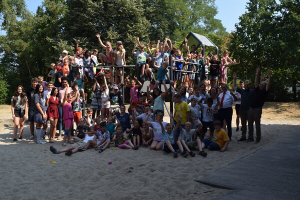 Seit Juli 2018 freuen sich besonders Kinder über ein neues Klettergerüst im öffentlich zugänglichen Park an der Pauluskirche.