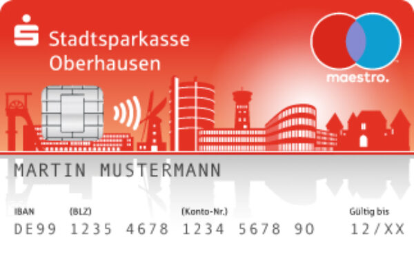 Die neue Sparkassen-Card mit der „Oberhausener Skyline“ ist ab sofort in allen Filialen der Stadtsparkasse Oberhausen und online erhältlich.
